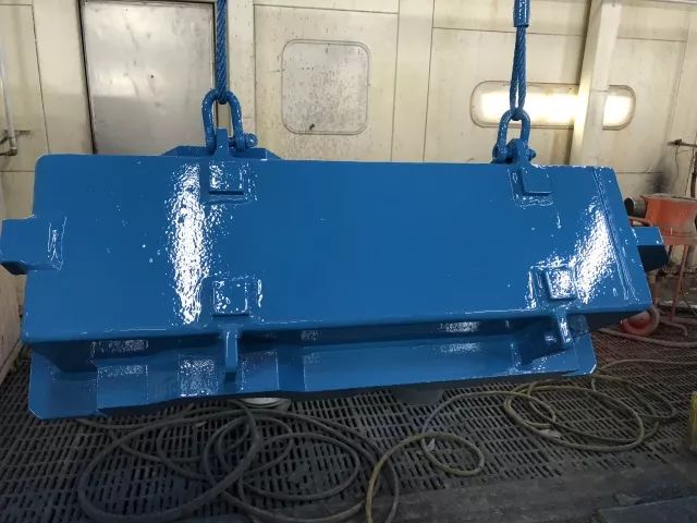 首批次無溶劑涂料在振華南通傳動(dòng)公司的齒輪箱上進(jìn)行了施工試點(diǎn),施工參數(shù)設(shè)定為底漆80μm,中漆150μm,面漆80μm,在不改變生產(chǎn)線現(xiàn)有單組份泵設(shè)備參數(shù)的情況下,順利的完成了三道涂料的施工。涂料施工混合壽命超過2小時(shí)。同時(shí),以其無刺激性涂料施工味道的優(yōu)勢獲得了施工工人的好評和認(rèn)可。整體重防腐涂層體系已經(jīng)通過實(shí)驗(yàn)室1500小時(shí)以上鹽霧測試和150天以上的耐化學(xué)品測試,整體性能優(yōu)異。