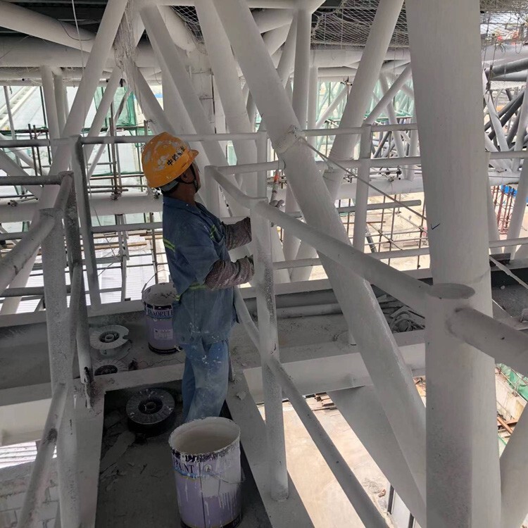 預涂底漆和中間漆,間隔24小時實干后覆涂本產品。采用噴涂工藝,噴涂1-2道,達到規(guī)定膜厚,推薦厚度60μm,施工完畢漆膜應光滑平整,顏色一致,無流掛、起泡、橘皮等漆病。