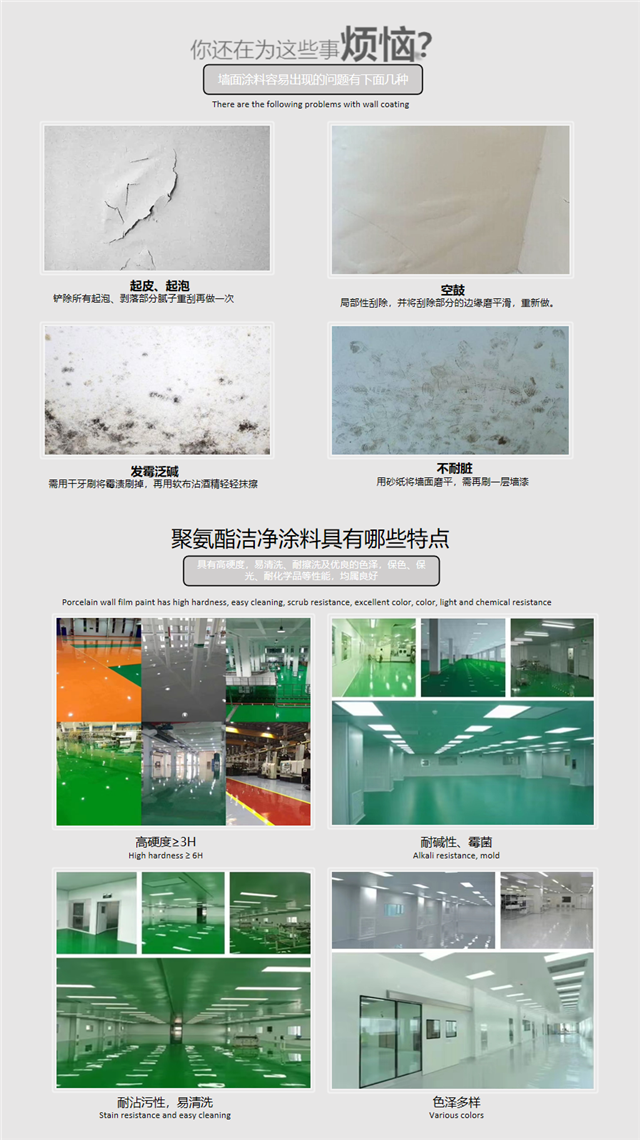 水性聚氨酯潔凈涂料 潔凈墻面頂棚涂料