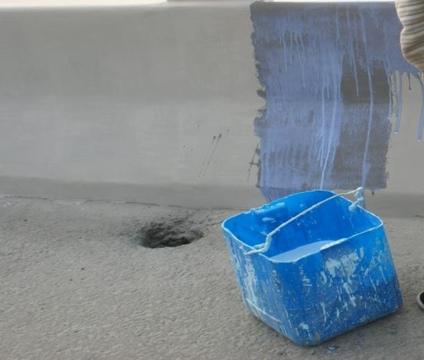 閉底涂料。大的表面用滾筒刷子來回滾平整,小的地方用小刷子刷均勻。用底涂料飽和滲透混凝土表面,堵塞混凝土微孔隙和裂紋。